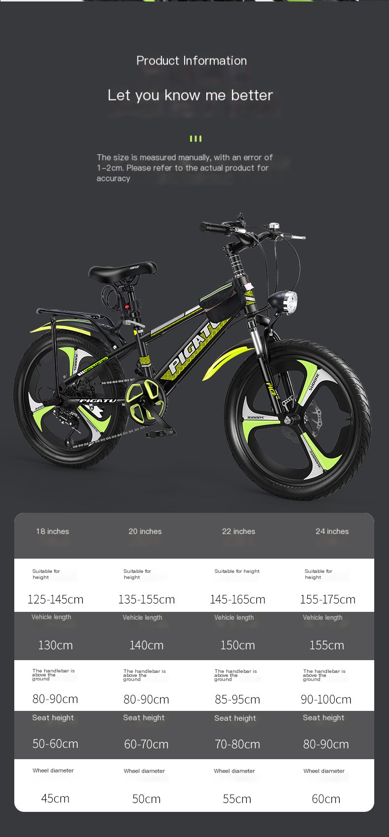 Introducing the perfect ride for your adventurous little ones: the Children's Shock Absorption Variable Speed Mountain Bike. Designed for comfort, safety, and fun, this bike is a must-have for every budding cyclist!
